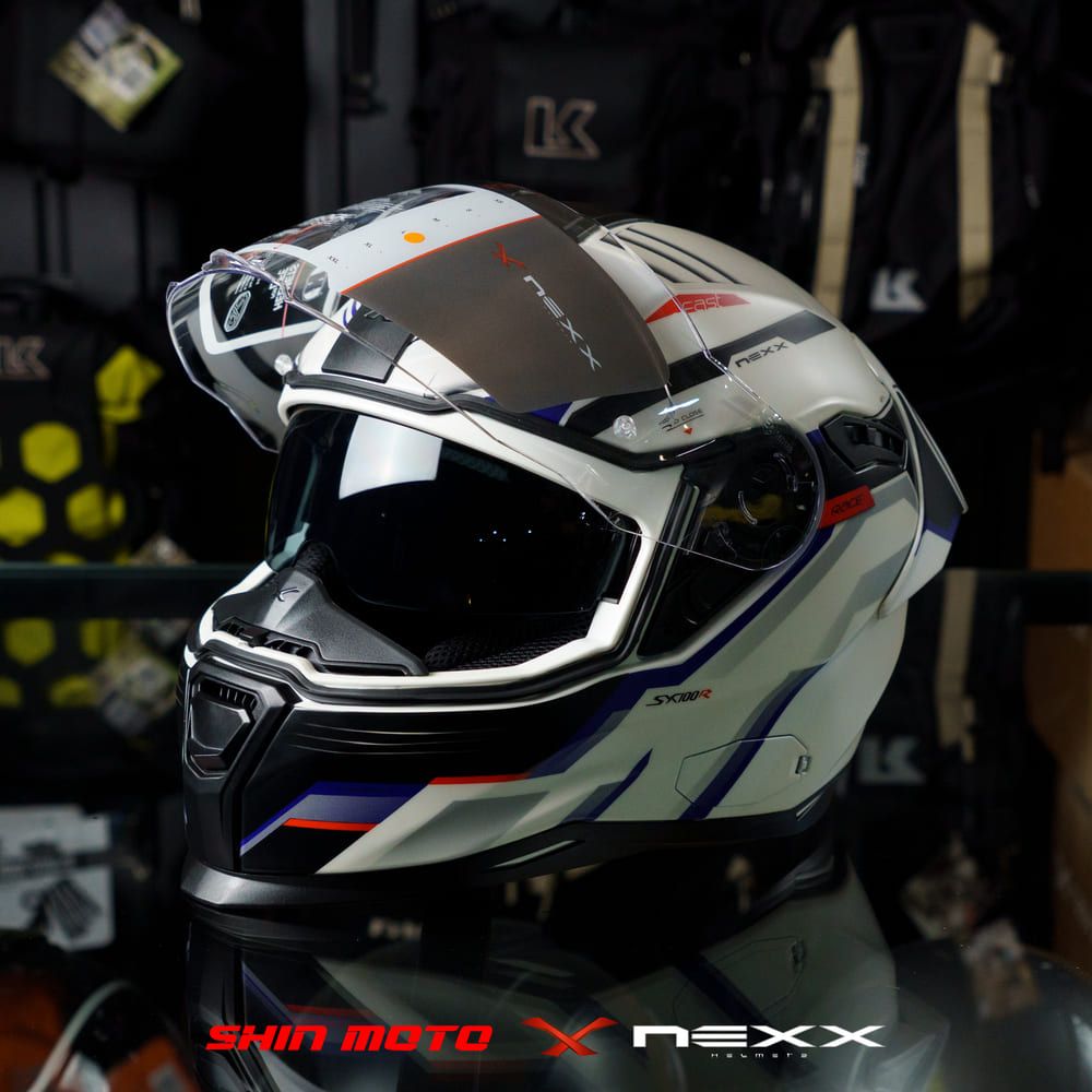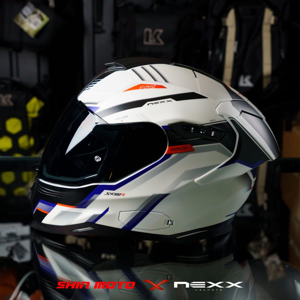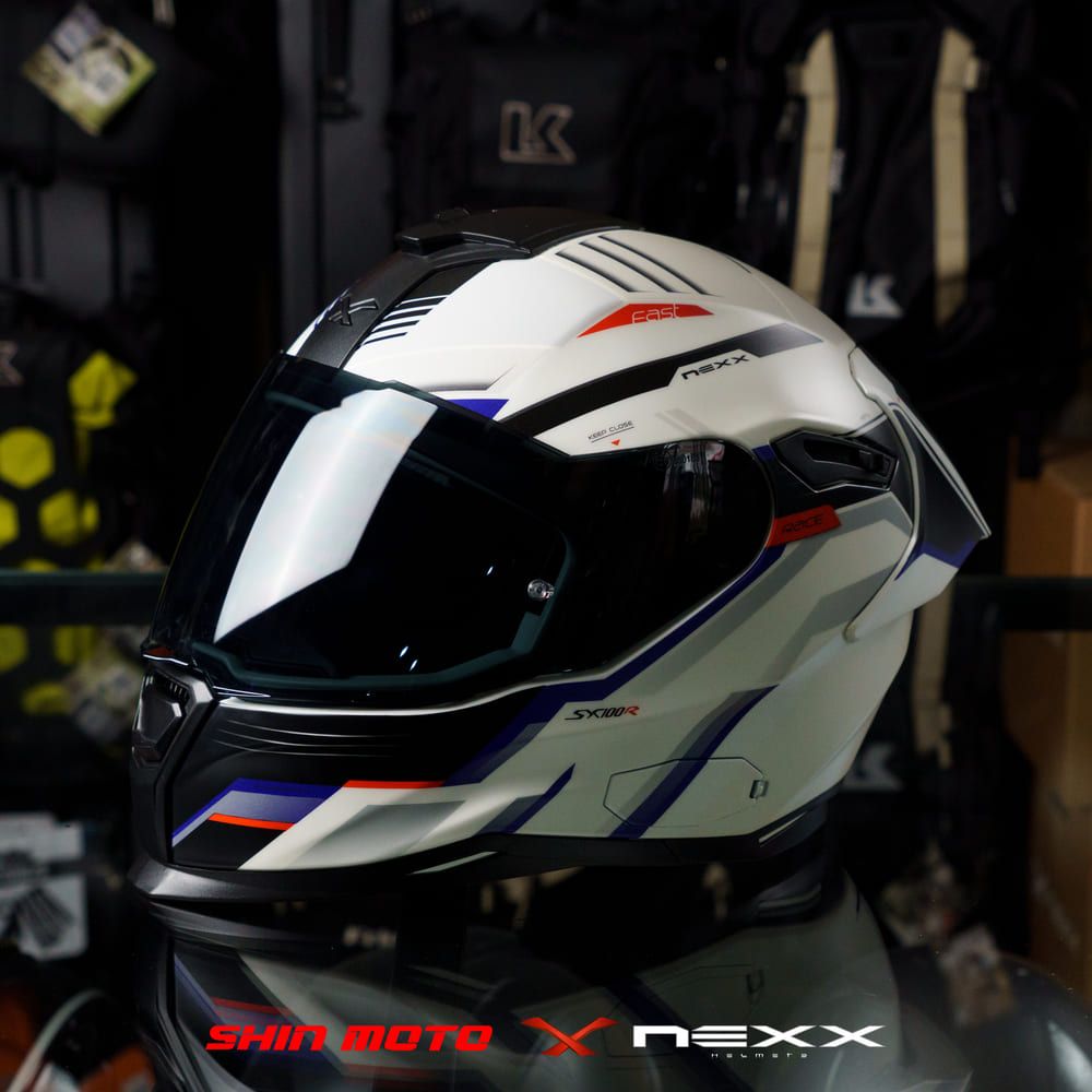 Mũ Fullface NEXX SX.100R Gridline - White Blue
